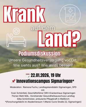 Wir wollen uns zusammen mit Expertinnen und Experten einen Überblick über die Lage im Landkreis Sigmaringen verschaffen und gemeinsam diskutieren, wie unsere Gesundheitsversorgung besser werden kann.